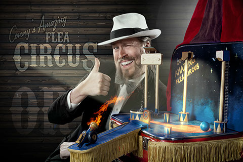 Med fantastiska artister som våghalsen Günther von Heinz II, ballerinan Brigitte Bidét och den superstarke Sergeij Despotin, ger Conny´s AMAZING Flea Circus den bästa loppcirkusen norr om Sydpolen, söder om Nordpolen och på polerna!
